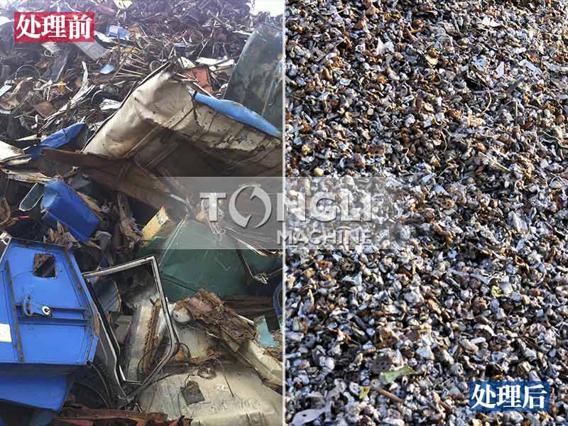 通利廠家的金屬破碎機采用自主的特殊移位篩板,出來的成品顆粒可在設(shè)計尺寸內(nèi)任意調(diào)節(jié),在破碎汽車殼、家電殼、摩托車、易拉罐、油漆桶等易除漆原材料時可調(diào)篩孔提產(chǎn)量,節(jié)省人工電費,減少設(shè)備磨損,在破碎彩鋼瓦、易拉罐等原材料時可調(diào)小篩孔,提產(chǎn)品質(zhì)量,采用自主的無縫鏈板,不漏料不卡料,降低設(shè)備故障,提運送能力。